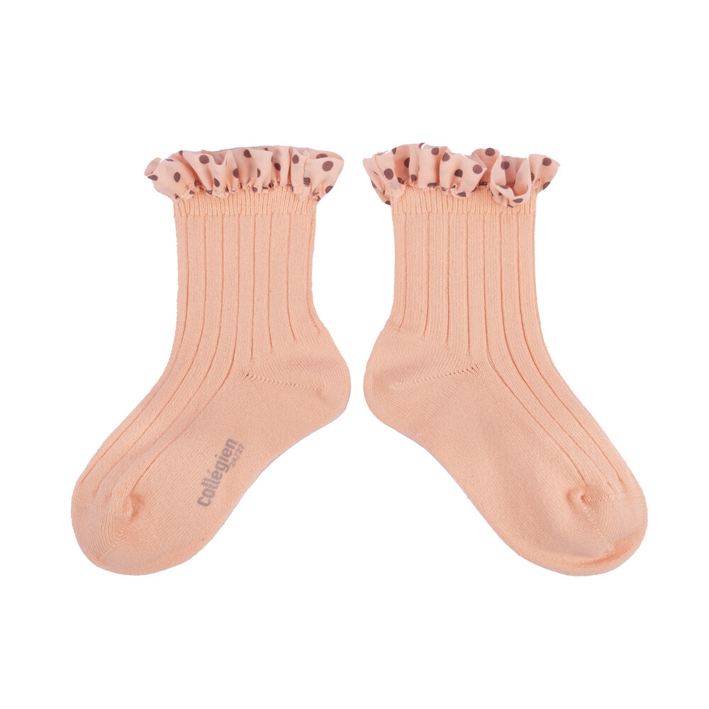 당일발송 [COLLEGIEN] Emilie - Polka Dots Ruffle Ankle Socks - Sorbet