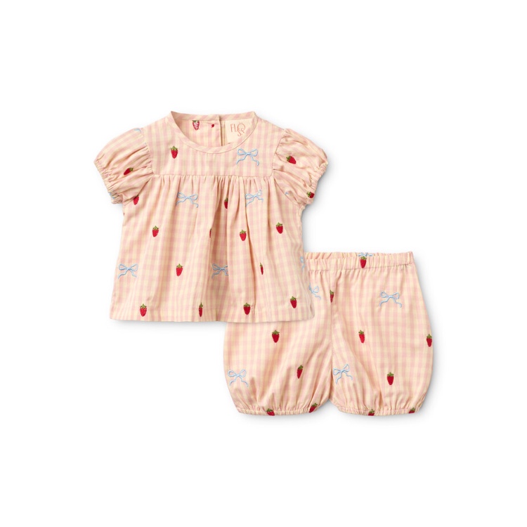 4월중순발송 [Floess] SS26 Dolly Bow Baby SS Set Berry/bow Gingham
