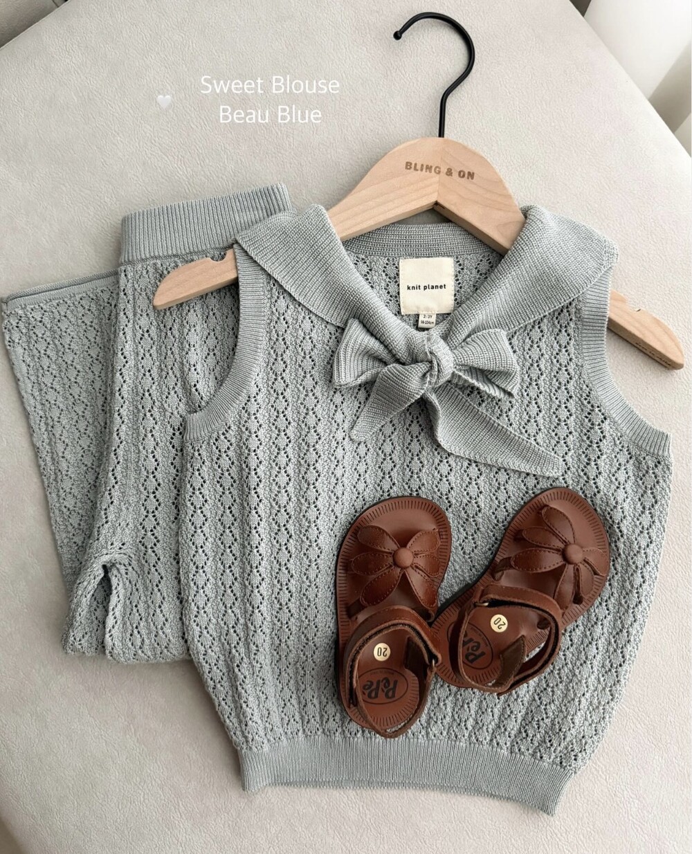 당일발송 [knit planet] SS26 Sweet Blouse Beau Blue