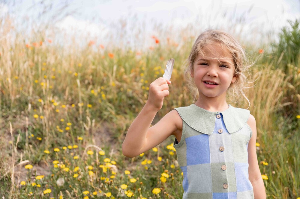 독특한 색상과 패턴의 패널이 구조화된 칼라와 만나 장난스러우면서도 세련된 느낌을 줍니다.