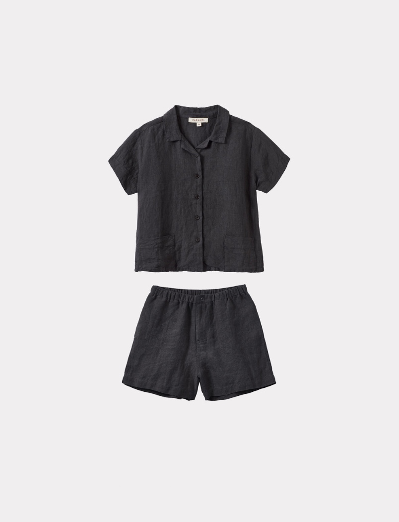 당일발송 [CARAMEL] SS26 BAMBOO CHILDREN'S SHIRT AND SHORTS SET - CHARCOAL