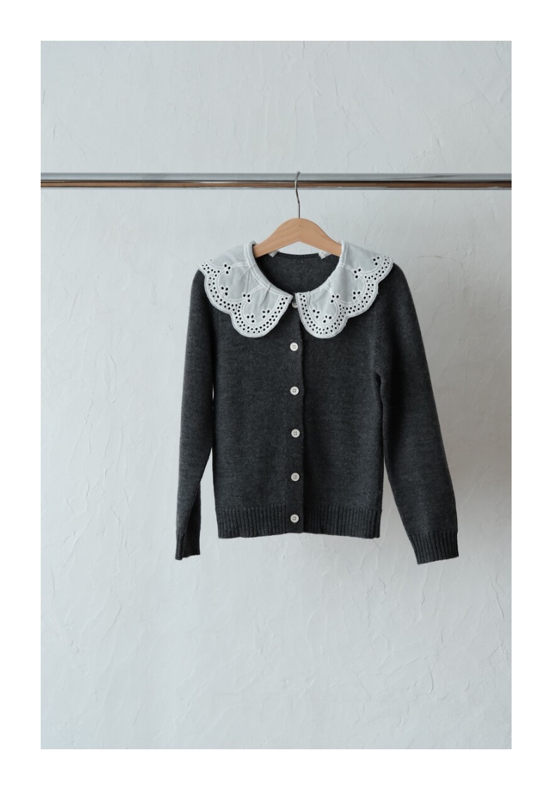 프리오더 [Mes kids des fleurs] AW25 Lace collar sweater - Black