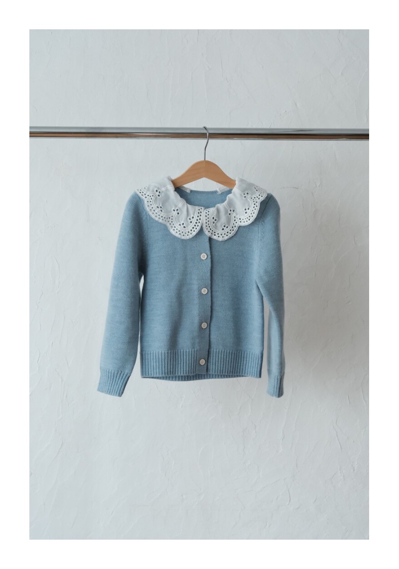 프리오더 [Mes kids des fleurs] AW25 Lace collar sweater - blue