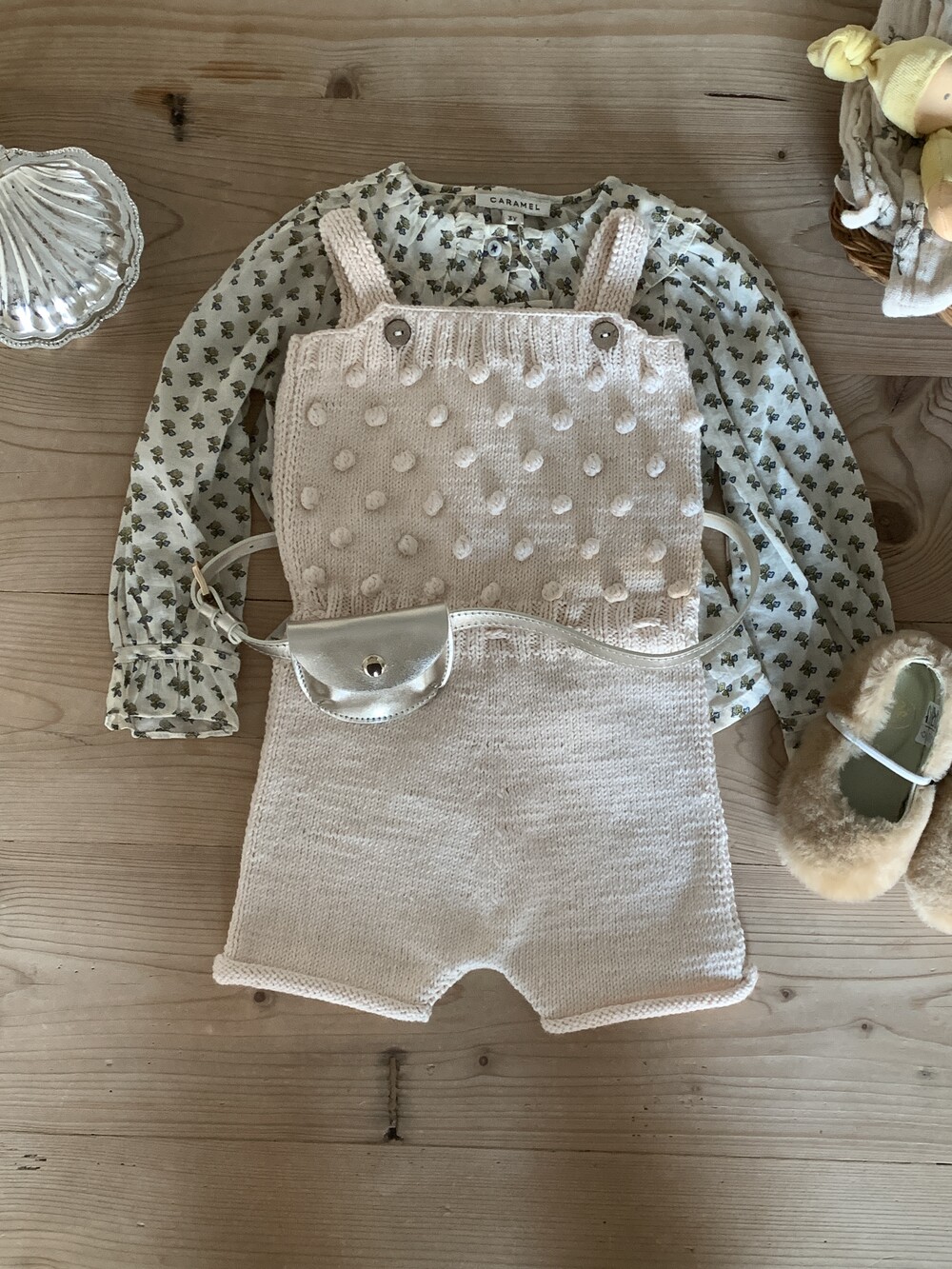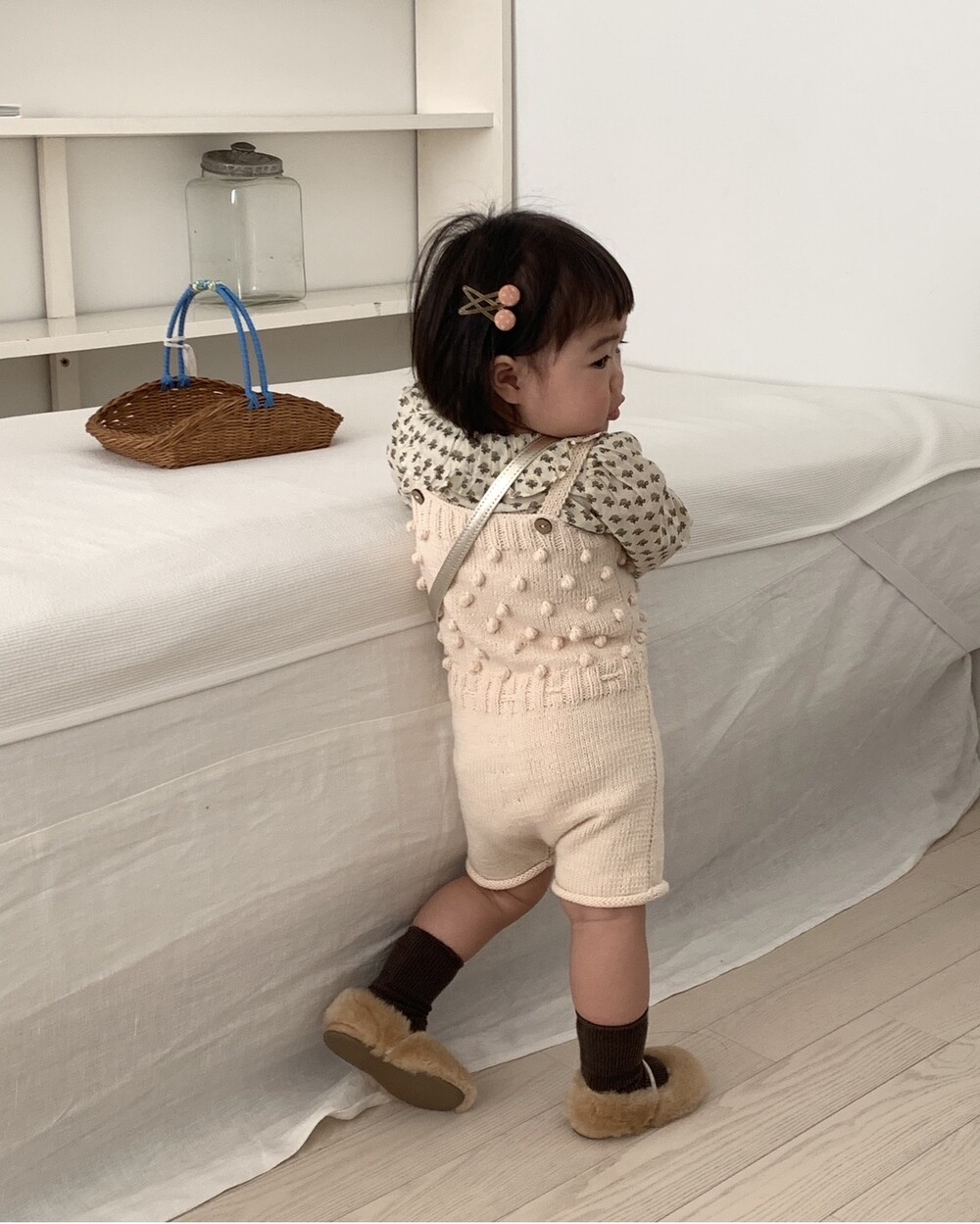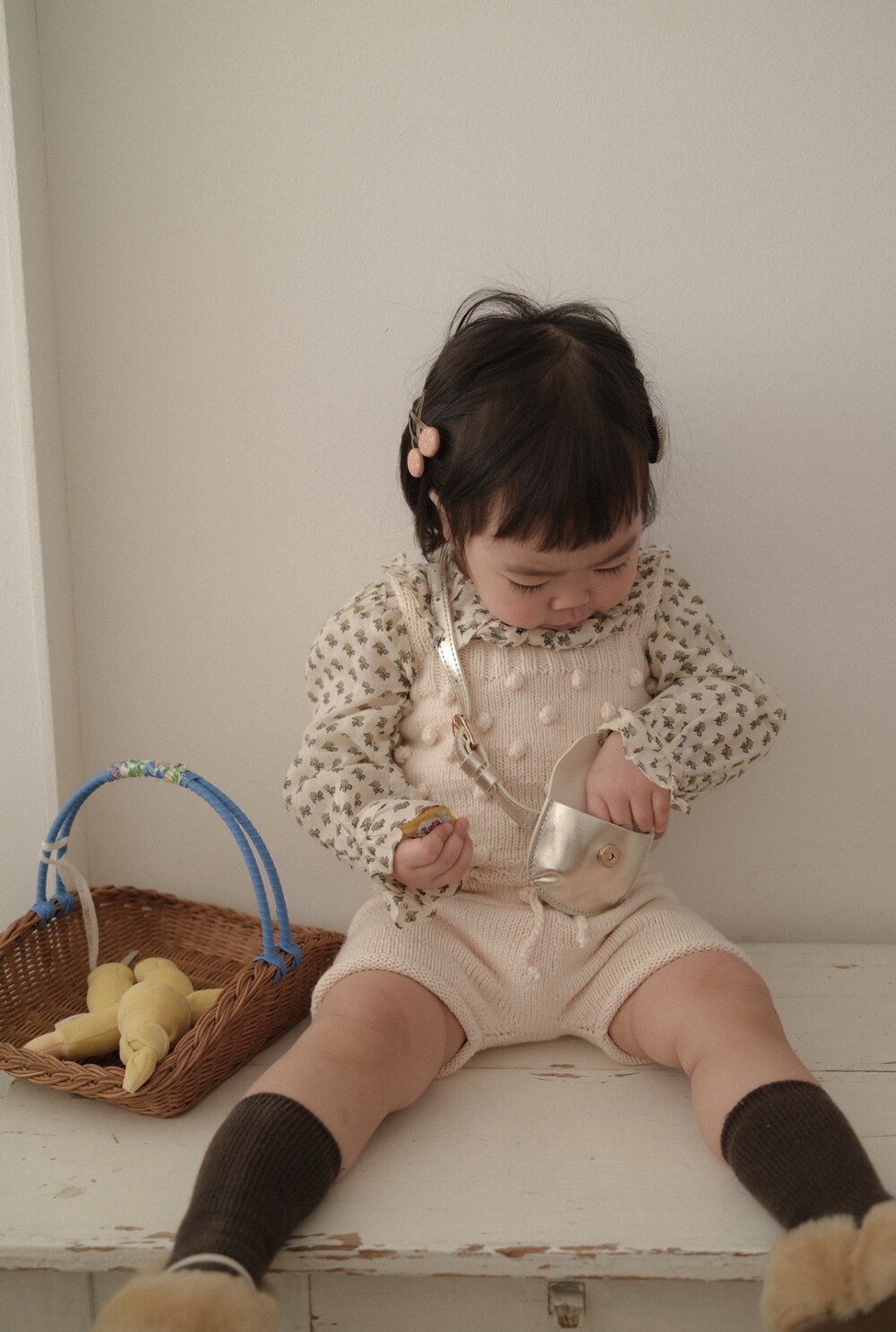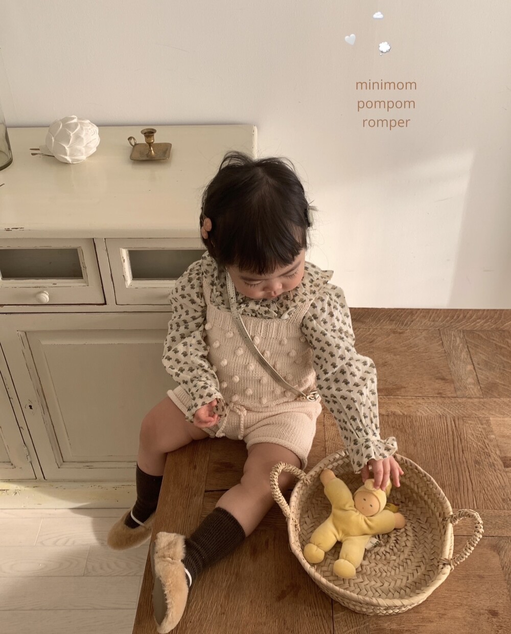 당일발송 [minimom] SS26 PomPom knit Romper / natural