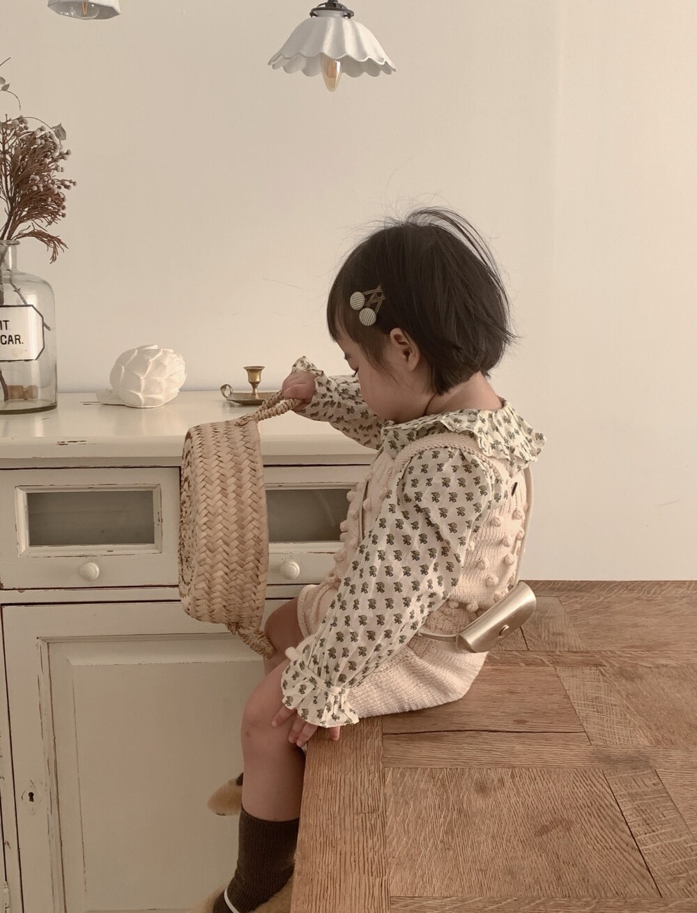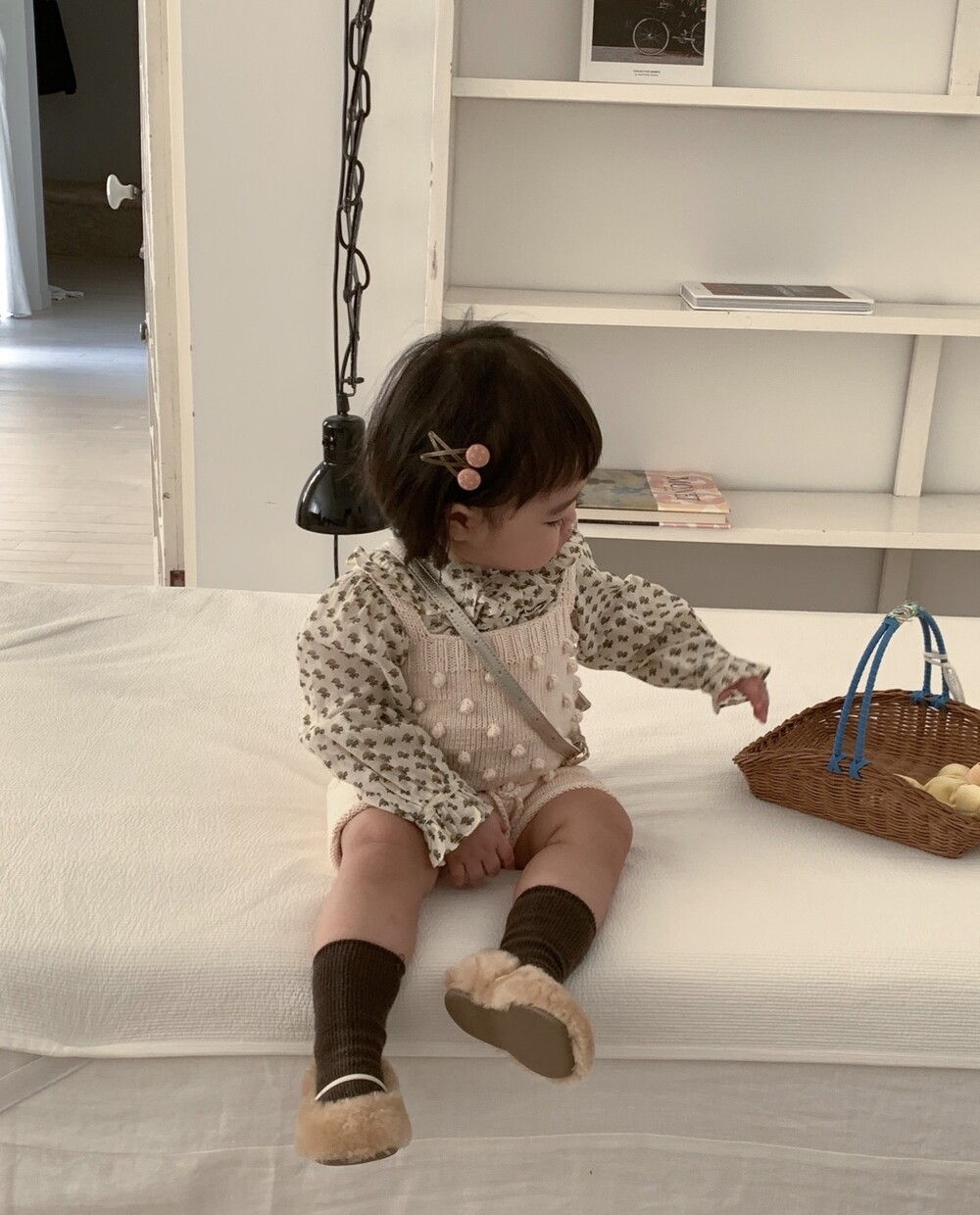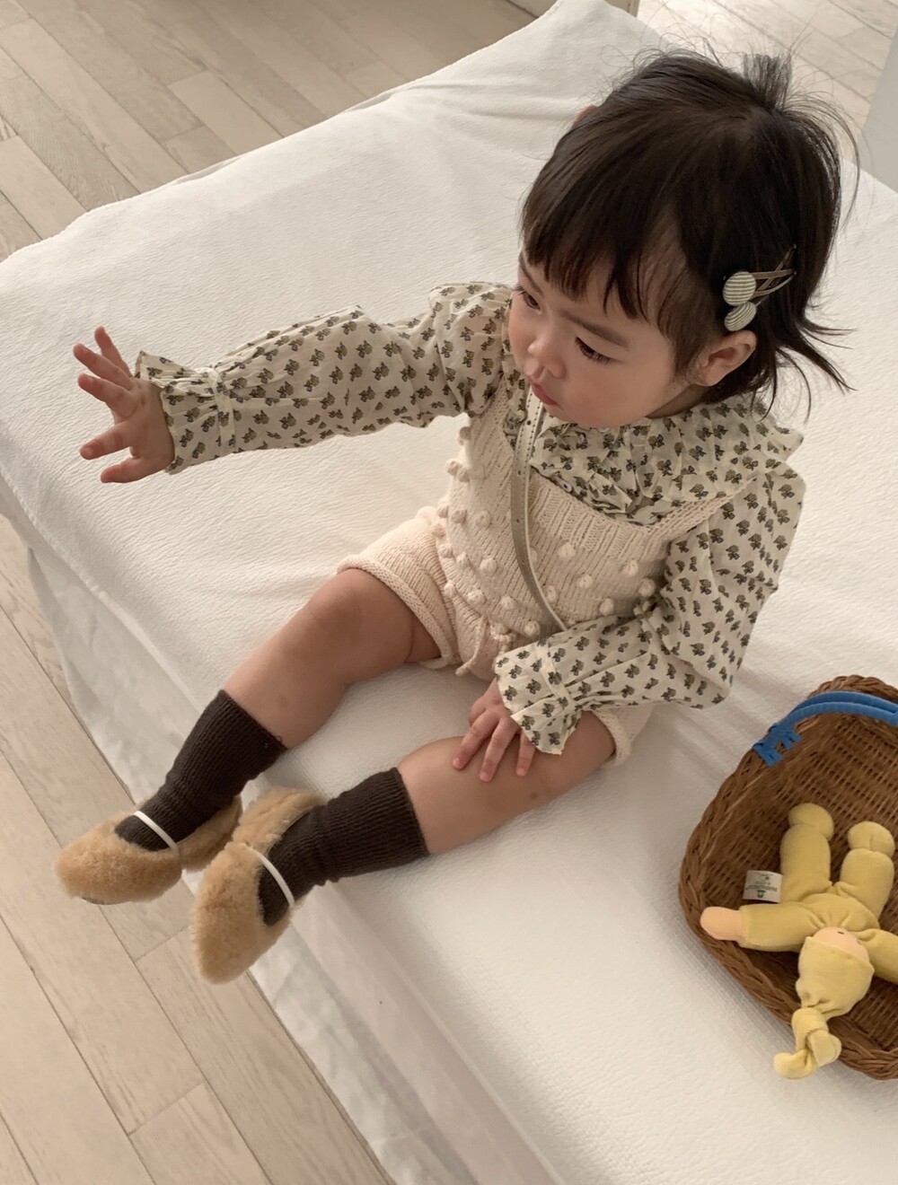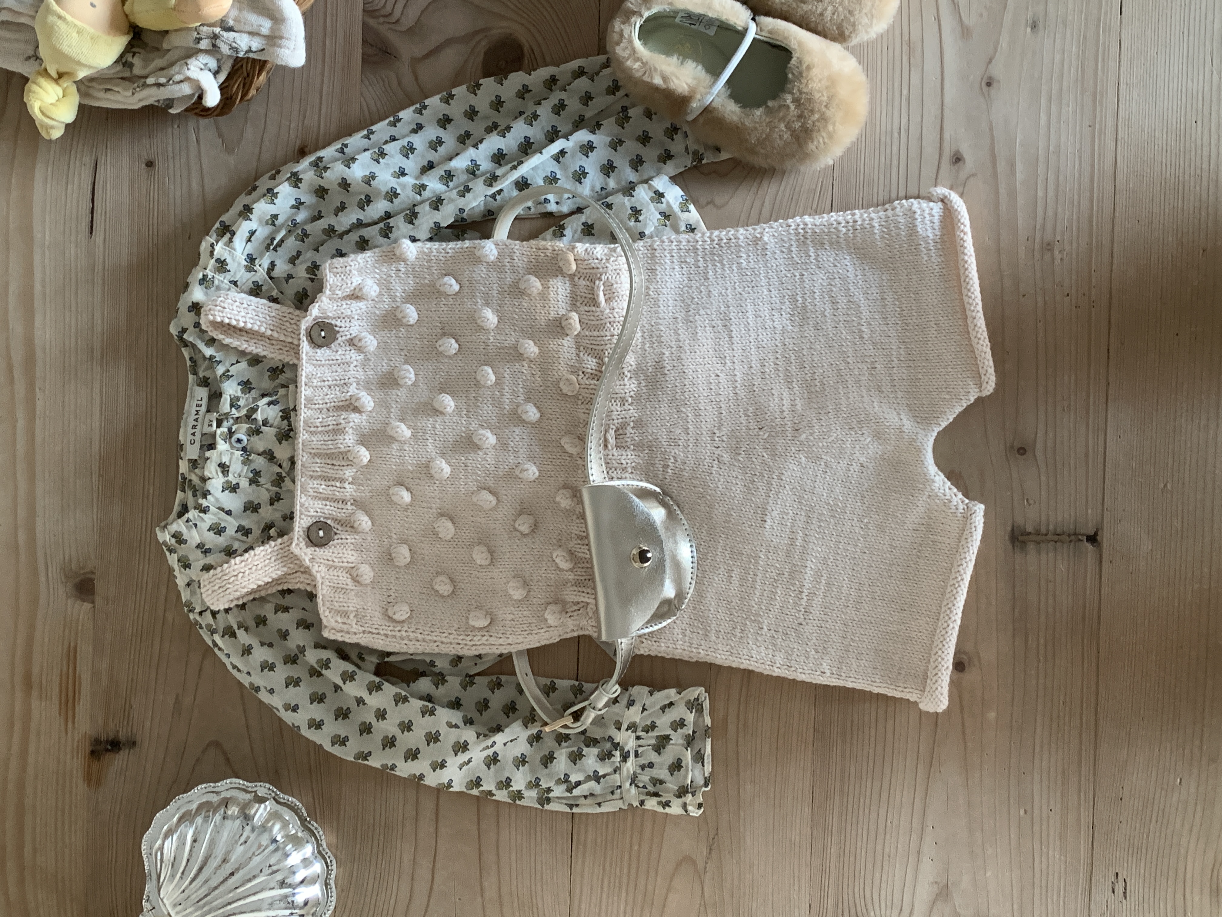 당일발송 [minimom] SS26 PomPom knit Romper / natural