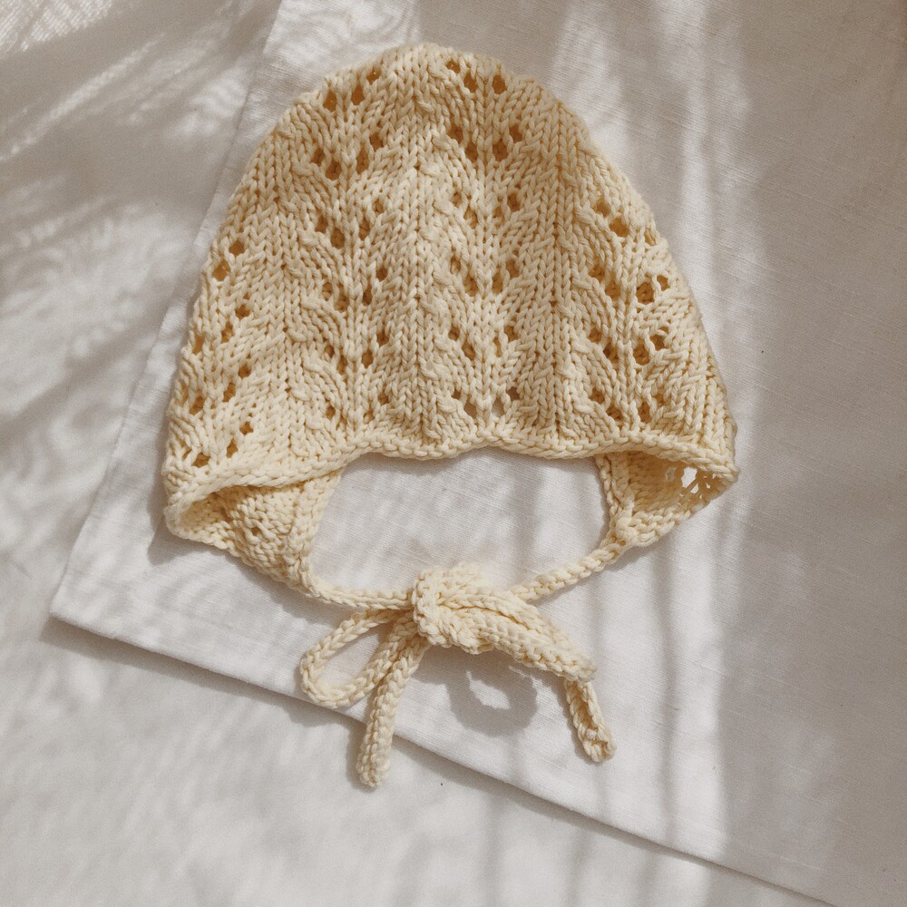 자연스러운 색상의 믿을 수 없을 정도로 복잡하고 섬세한 미스트 보닛입니다.매력적인 오픈워크 빈티지 패턴은 손으로 처음부터 만들었습니다.미스트 보닛을 만든 소재는 유기농 면으로 따뜻한 여름날에 좋은 선택입니다.개방형 작업 패턴 덕분에 캡은 머리의 적절한 통풍을 보장합니다. 반면 면은 통기성이 좋고 섬세하며 알레르기가 없기 때문에 최대한의 사용 편의성을 제공합니다. GOTS 인증서가 있는 유기농 면은 비건 소재로 사람과 자연의 권리를 존중하여 생산되었습니다.