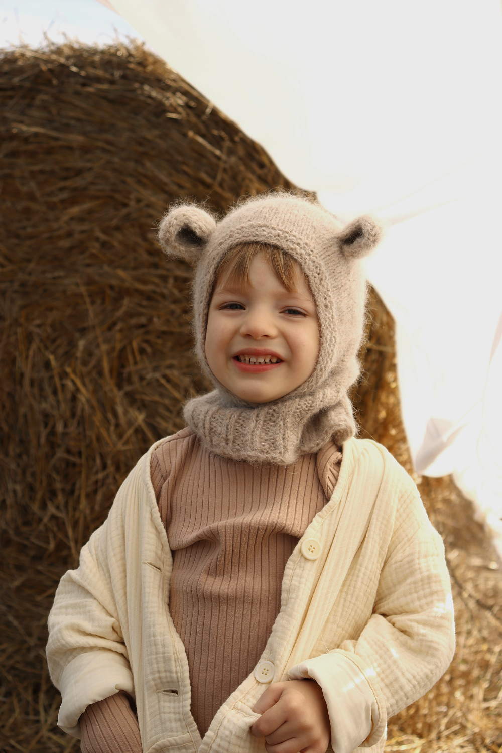 라이트 베이지 색상의 발라클라바는 거의 모든 색상의 의류에 쉽게 적응하여 세련된 토핑을 선사합니다.