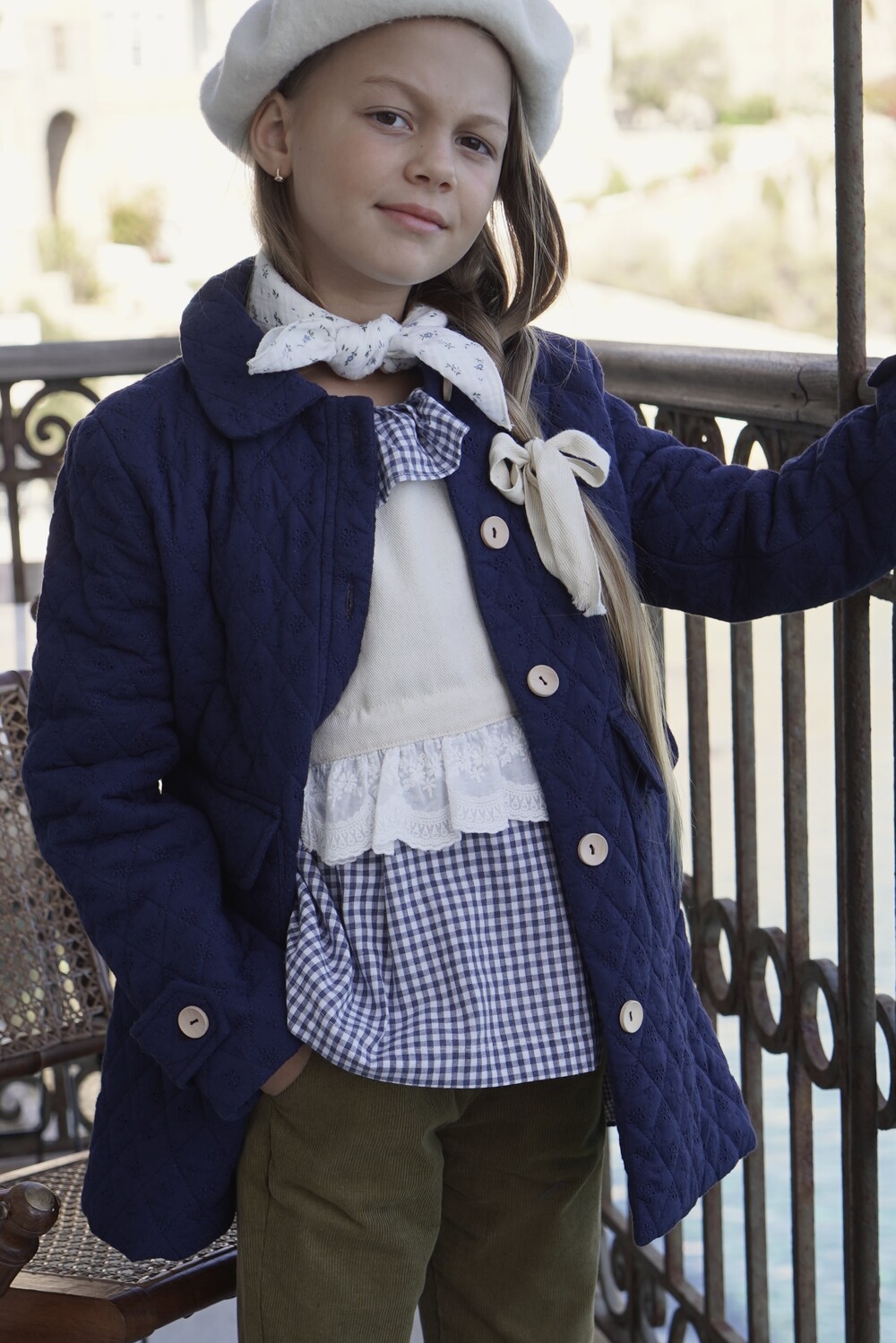 궁전 같은 로얄 브로데리로 제작된 에스텔 퍼퍼는 매우 부드러운 면과 시그니처 나무 버튼 포켓에 전체 안감이 있는 따뜻하고 긴 길이의 제품입니다. 순면으로 제작되었습니다.
