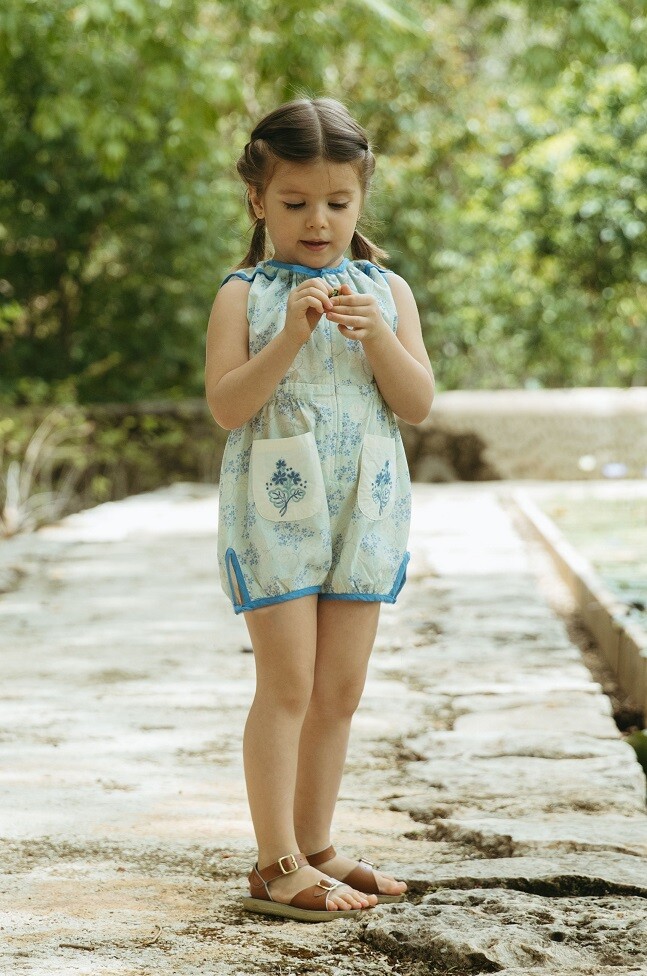 민트 플라워 프린트의 선 수트 롬퍼는 따뜻한 날씨의 놀이를 위해 빈티지에서 영감을 받은 제품입니다. 스튜디오에서 맞춤 제작하여 선명하고 가벼운 면 포플린으로 인쇄된 이 제품은 전면 지퍼가 있어 빠르게 교체하고 쉽게 배변할 수 있으며, 달콤한 자수 포켓이 있어 장난기 가득한 랄리 터치가 특징입니다. 일상적인 모험, 휴가, 햇볕에 젖은 날에도 완벽하게 어울립니다.