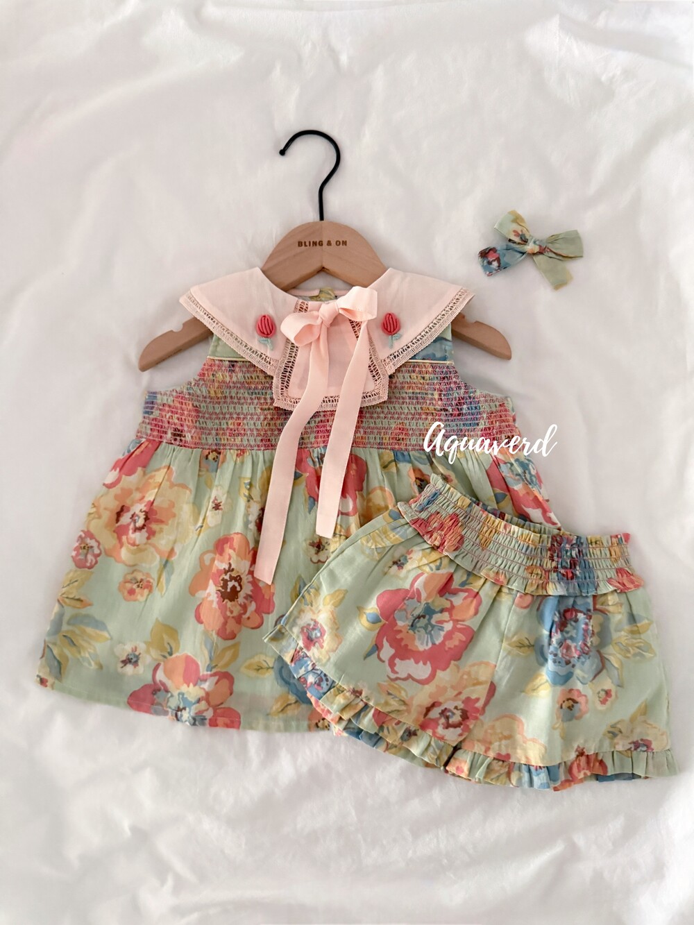 당일발송 [Bachaa] SS26 AQUAVERD Blouse & short set - WATCOLPR