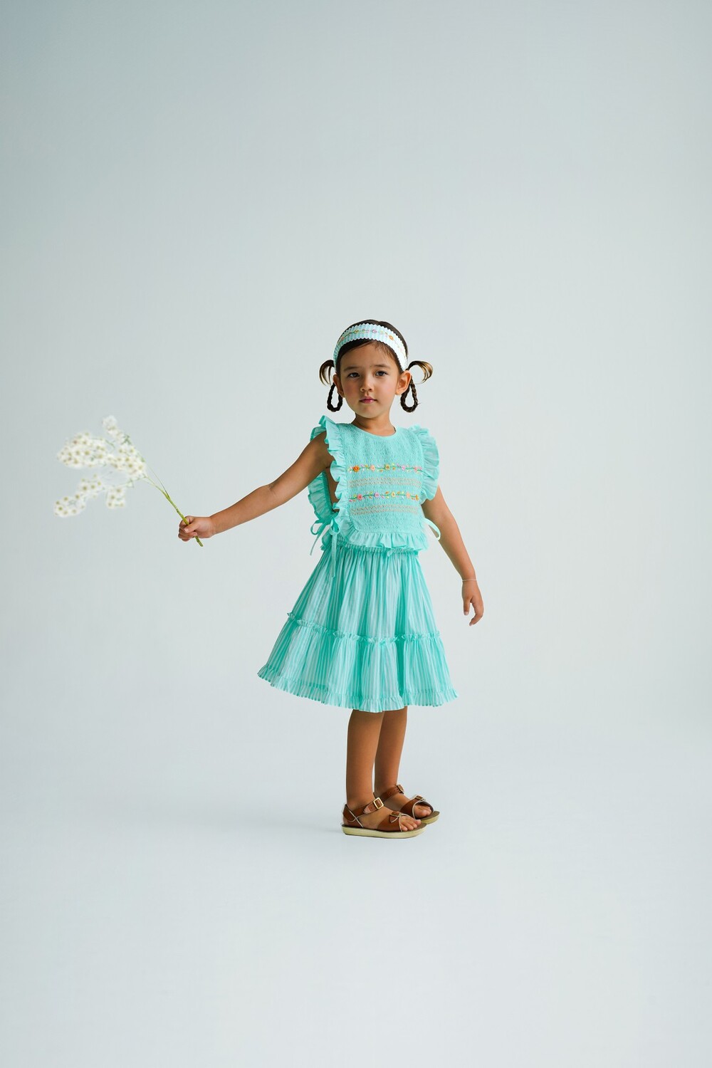 당일발송 [KIDSAGOGO] SS26 Embroidered Hair Band - sea mist stripe