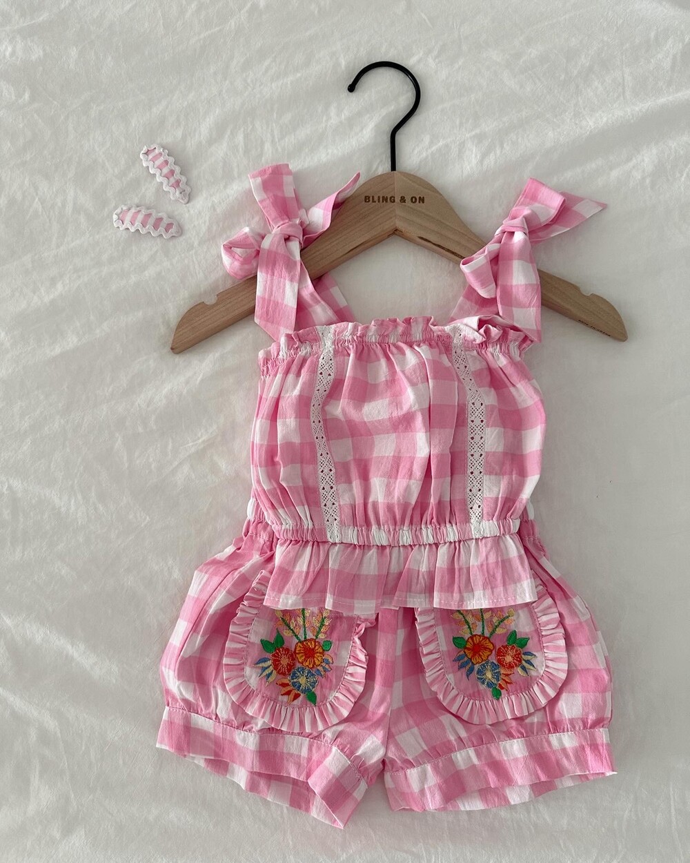 당일발송 [KIDSAGOGO] SS25 Felice Embroidered Short Vichy Camelia