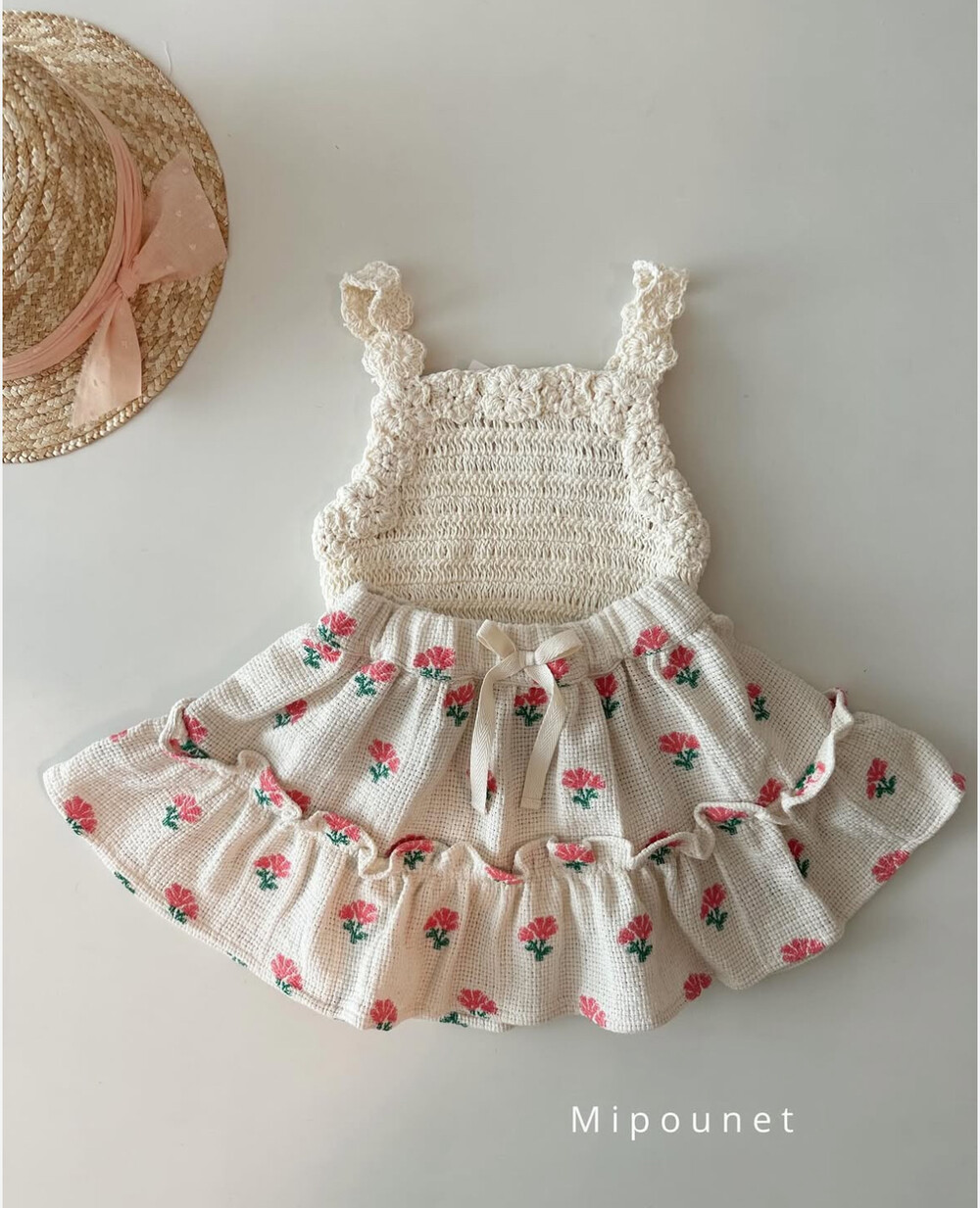 당일발송 [Mipounet] SS25 CORALINE SMOCK SKIRT ECRU /CORAL
