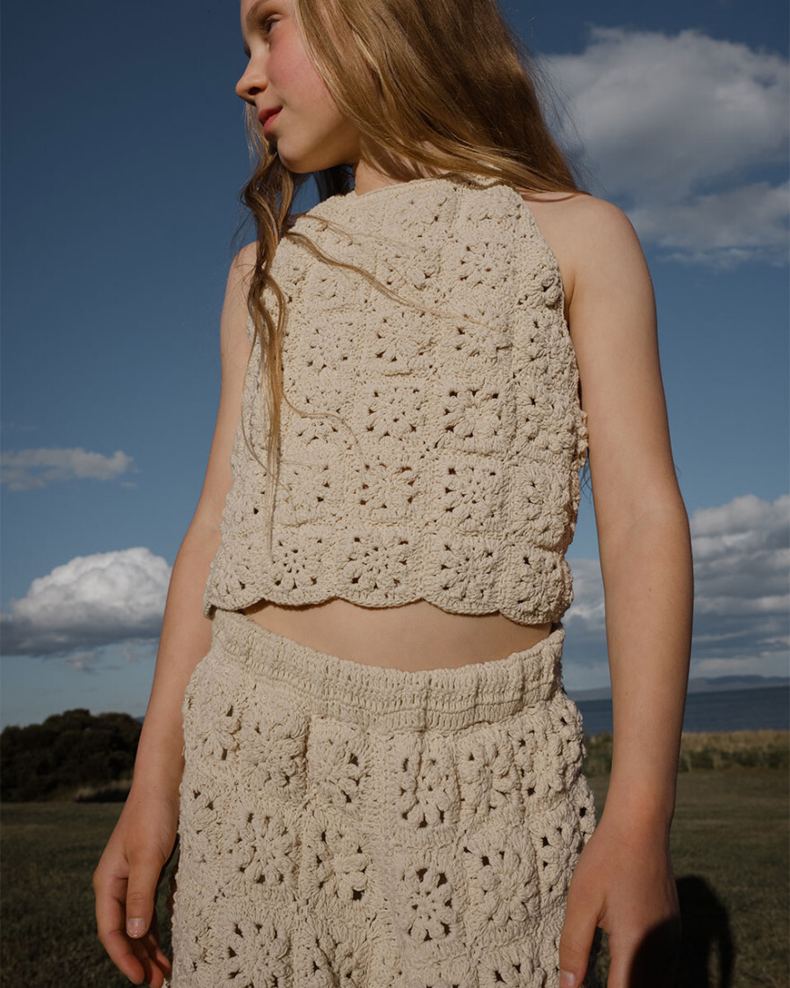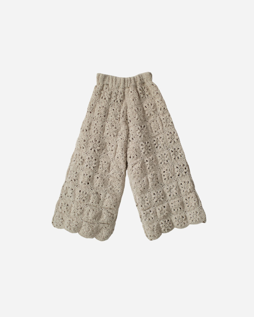 햇살이 내리쬐는 날을 위한 달콤한 노래인 이 손 뜨개질 스커트는 느린 예술성과 부드러운 장인 정신의 보물입니다. 각 꽃 사각형은 느리고 사랑스럽게 함께 뜨개질되어 빈티지하면서도 따뜻한 느낌을 주는 섬세한 패턴을 형성합니다. 손 뜨개질 작품 하나를 완성하는 데는 40~56시간이 소요됩니다. 이 시간은 공장에서 보내는 것이 아니라 마을 주민들이 일상의 일부로 만든 집에서 보내는 시간입니다. 집안일, 휴식의 순간, 익숙한 일상 사이에서도 작품은 바느질로 부드럽게 이어집니다. 손 뜨개질은 깊이 개인적이고 깊이 인간적인 헌신의 행위입니다. 이러한 작품 중 하나를 착용하면 오랜 시간 동안 인내의 시간, 삶의 순간, 작업에서 천천히 만든 손을 착용하게 되어 오랫동안 사랑받을 수 있습니다.