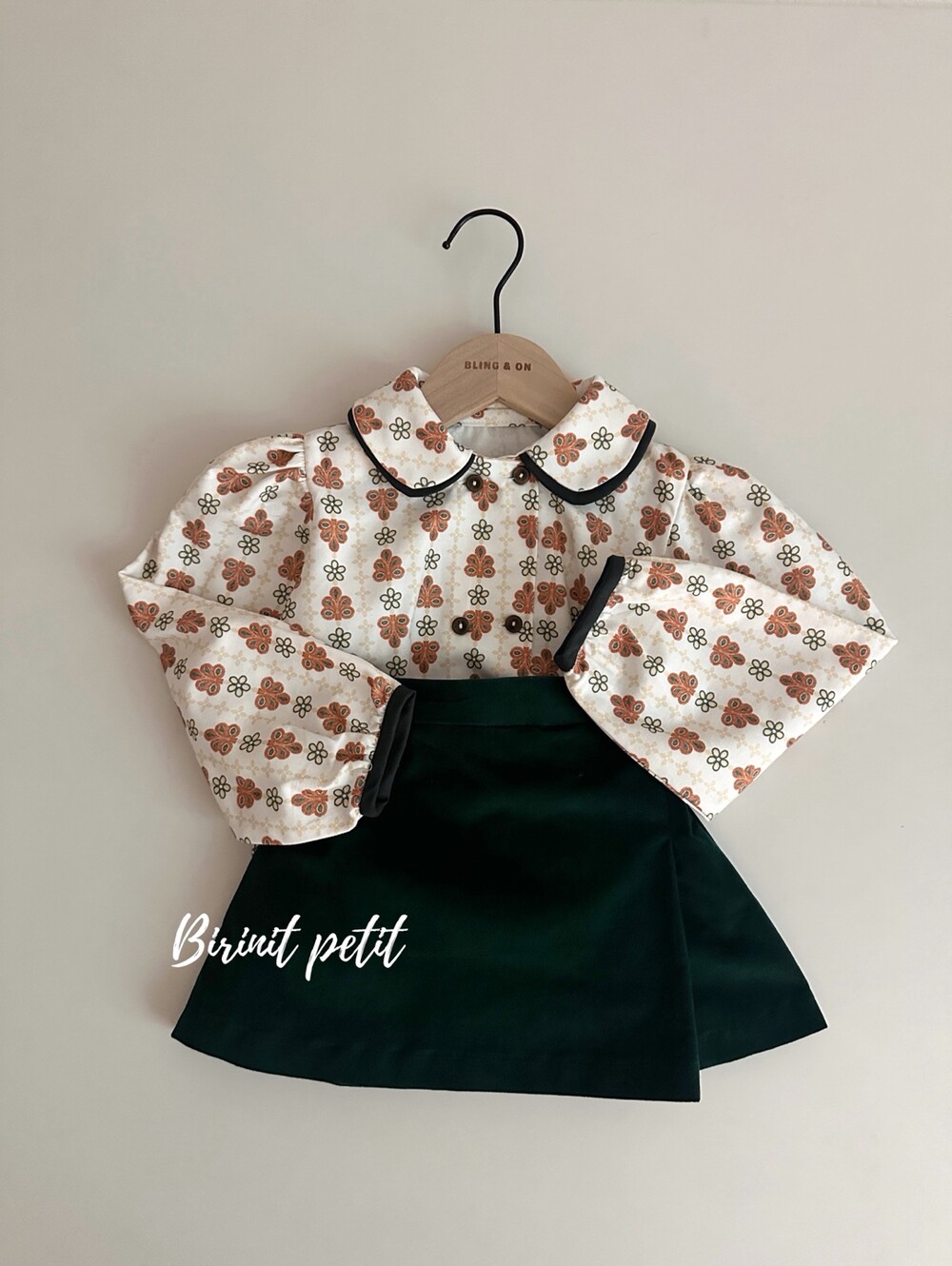 당일발송 [Birinit petit] AW25 Green Antique velvet mini skirt