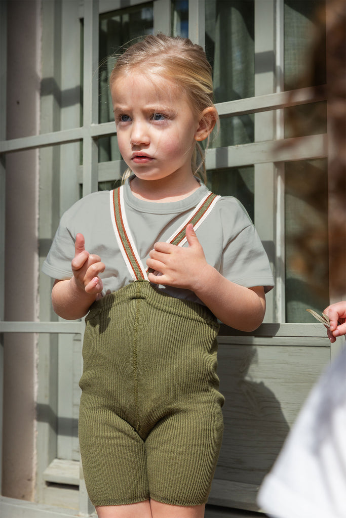 레트로 챔프 SS25 컬렉션의 일부인 이 제품은 레트로한 화려함으로 에너지와 장난기의 정신을 담아냈습니다. 올리브 그린, 크림, 시나몬 톤의 스트라이프 브레이스가 특징입니다.이 독특한 짧은 타이츠와 교정기는 여름 모험 중 가장 활동적인 아기와 유아들에게도 보조를 맞출 수 있습니다. 매우 강하고 부드럽고 100% 유기농 면으로 만들어져 피부가 따뜻한 날에도 잘 숨 쉴 수 있도록 도와줍니다.유럽의 중심, 체코 공화국에서 사랑으로 만들어졌습니다. 전통적으로 수십 년 동안 자신의 작품을 소중히 여기는 사람들이 만들었습니다.