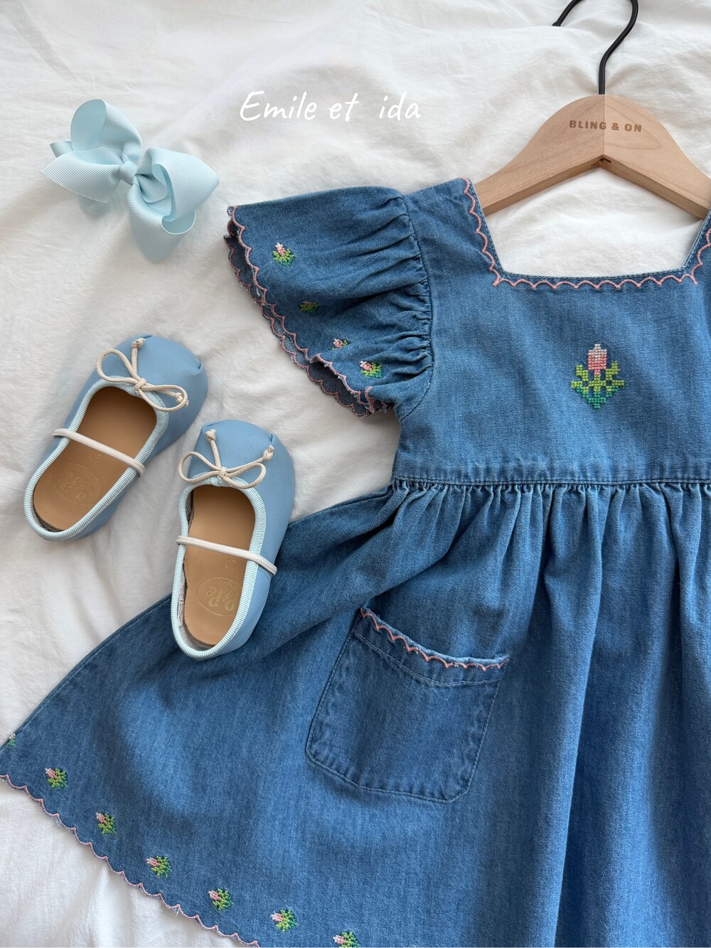 당일발송 [Emile et ida] SS26 ROBE BRODE DENIM