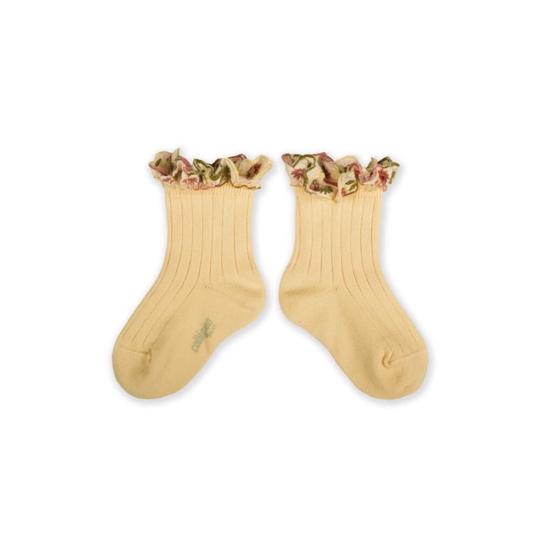 당일발송 [COLLEGIEN] Anémone - Embroidered Ruffle Ribbed Ankle Socks 039