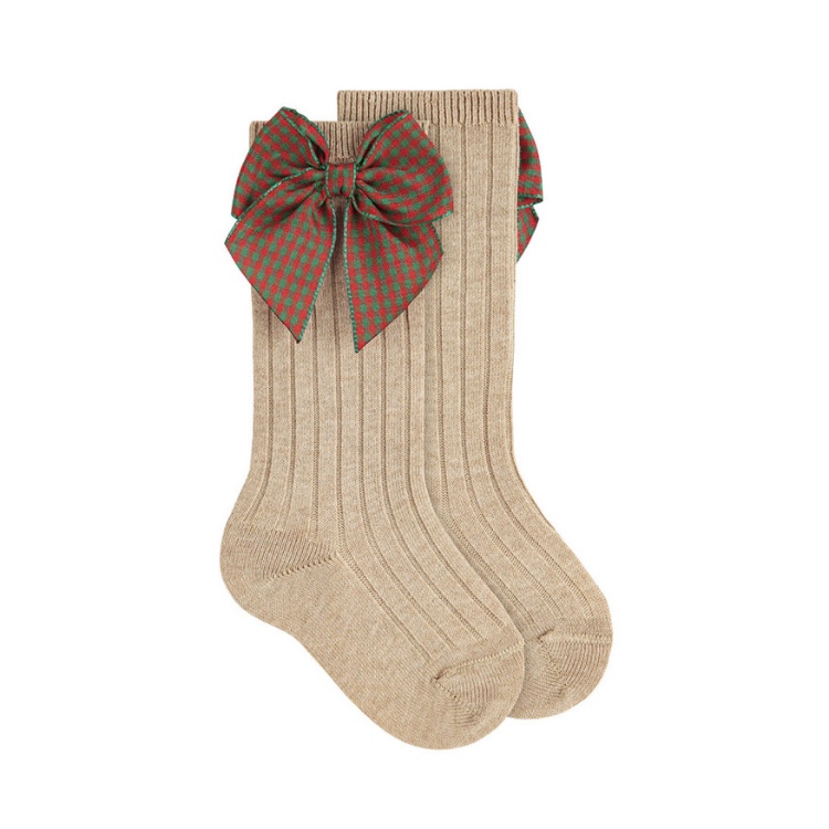 당일발송 [Condor] Knee socks with christmas vichy bow 316