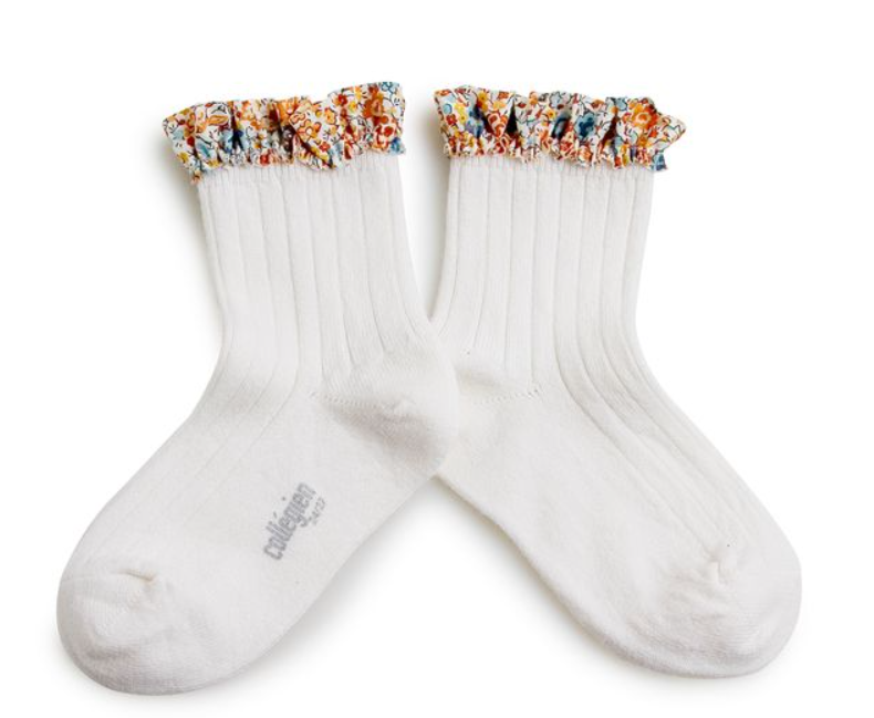 당일발송 [COLLEGIEN] Charlotte Liberty Ruffle Ribbed Ankle Socks - Blanc Neige 908
