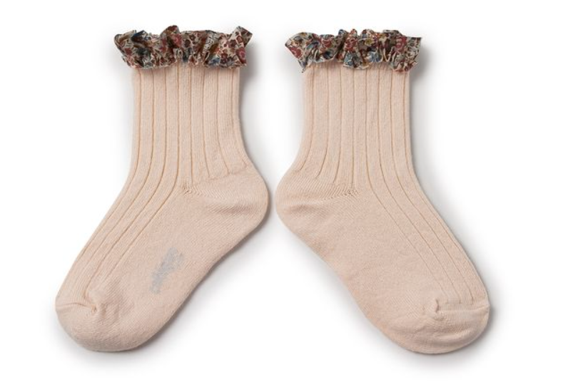 당일발송 [COLLEGIEN] Charlotte Liberty Ruffle Ribbed Ankle Socks - Sorbet 590