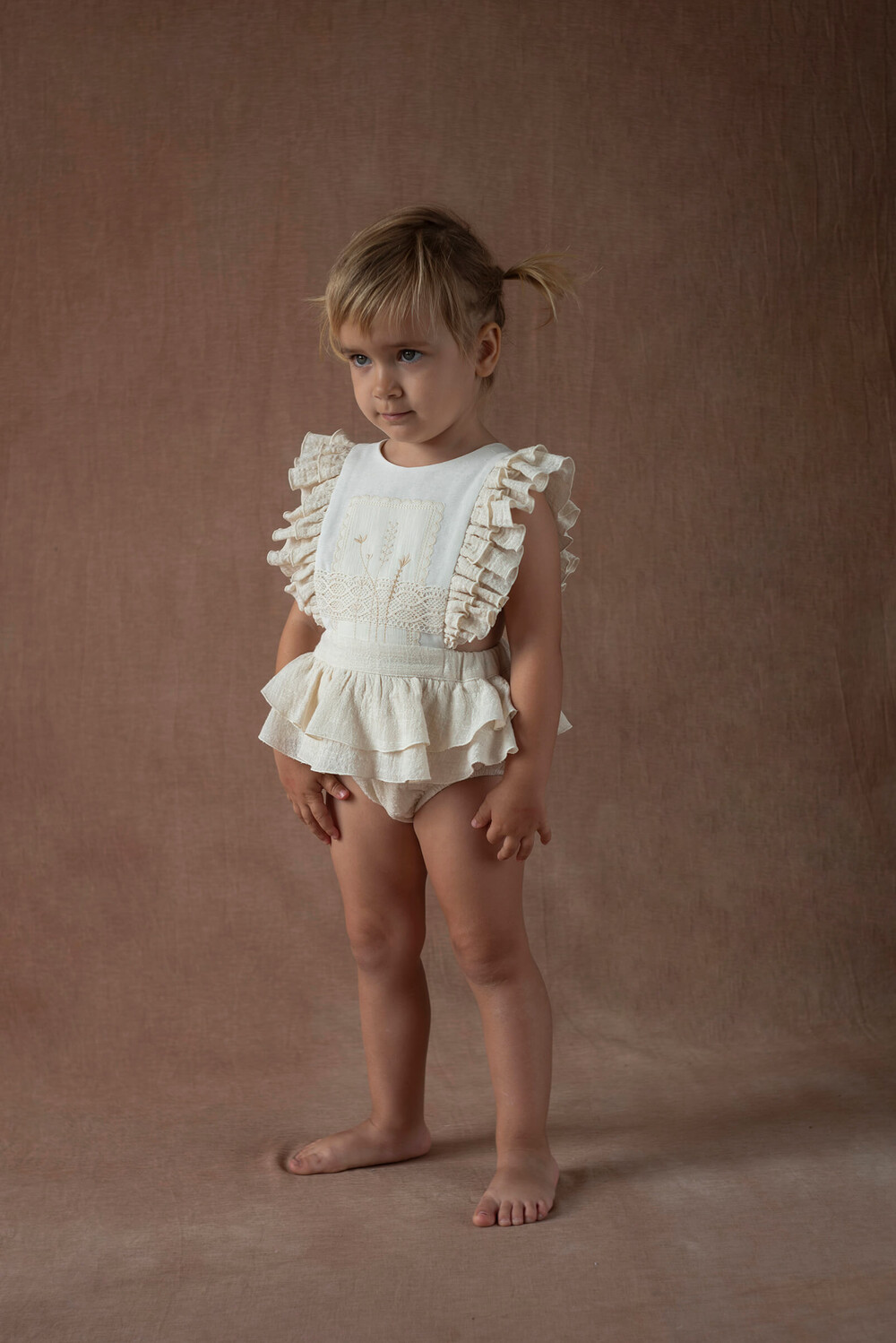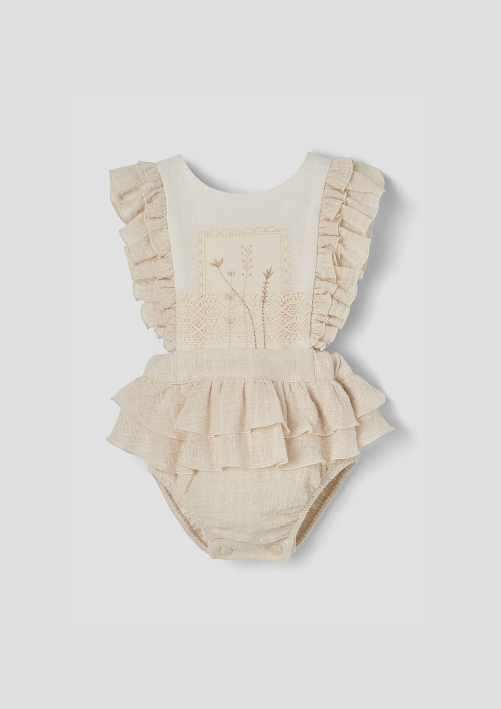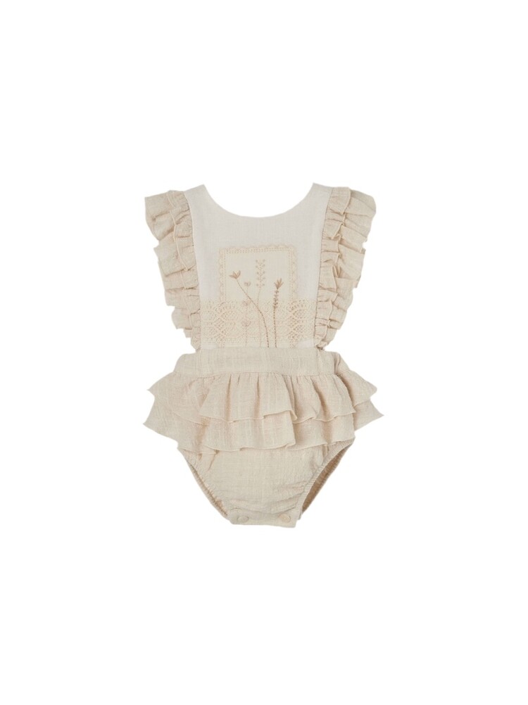 당일발송 [Popelin] SS26 Off-white romper suit with embroidered bib
