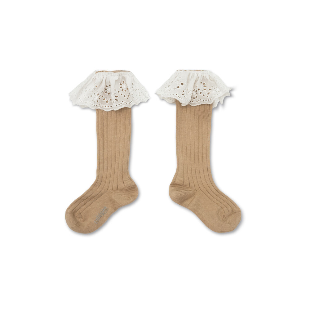 당일발송 [Collegien] Sixtine - Ribbed Knee-high Socks with Broderie Anglaise 280