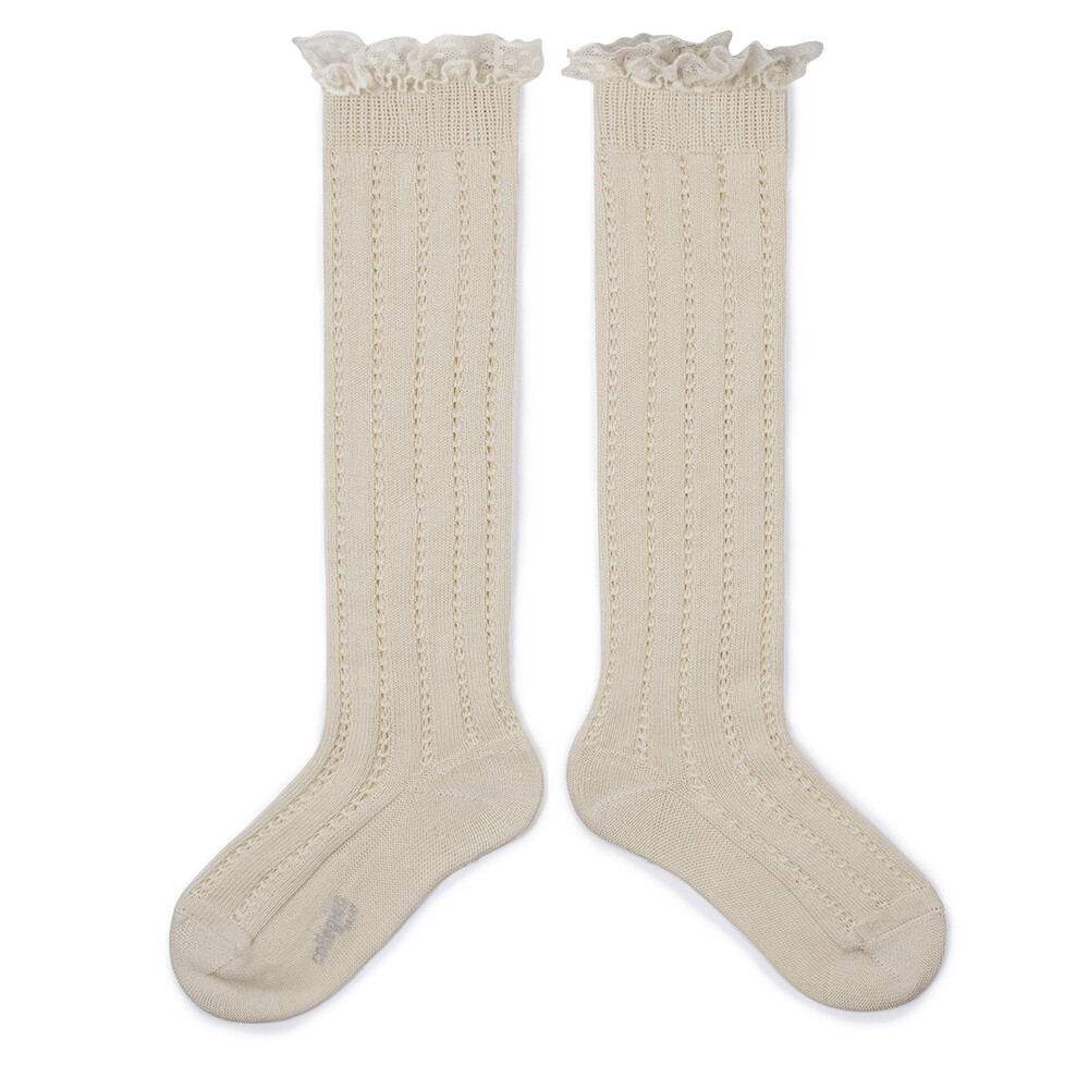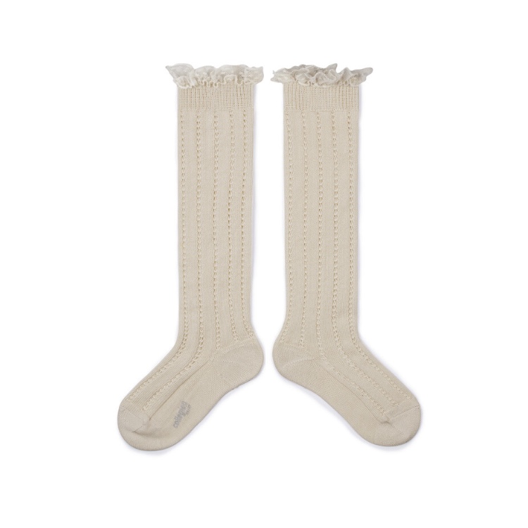 당일발송 [Collegien] Marie Léonie - Lightweight Openwork Knee-high Socks with Swiss-dot Frill 037