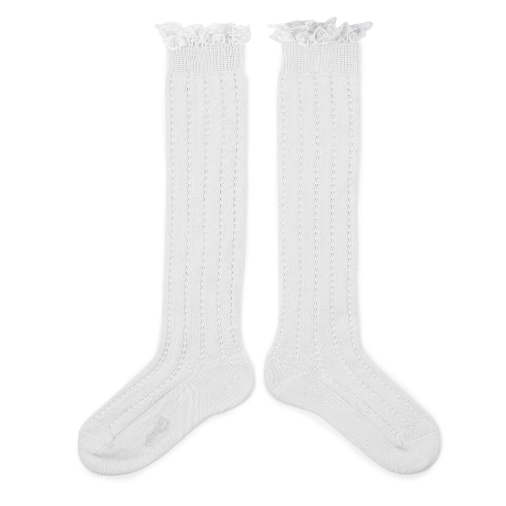 당일발송 [Collegien] Marie Léonie - Lightweight Openwork Knee-high Socks with Swiss-dot Frill 908